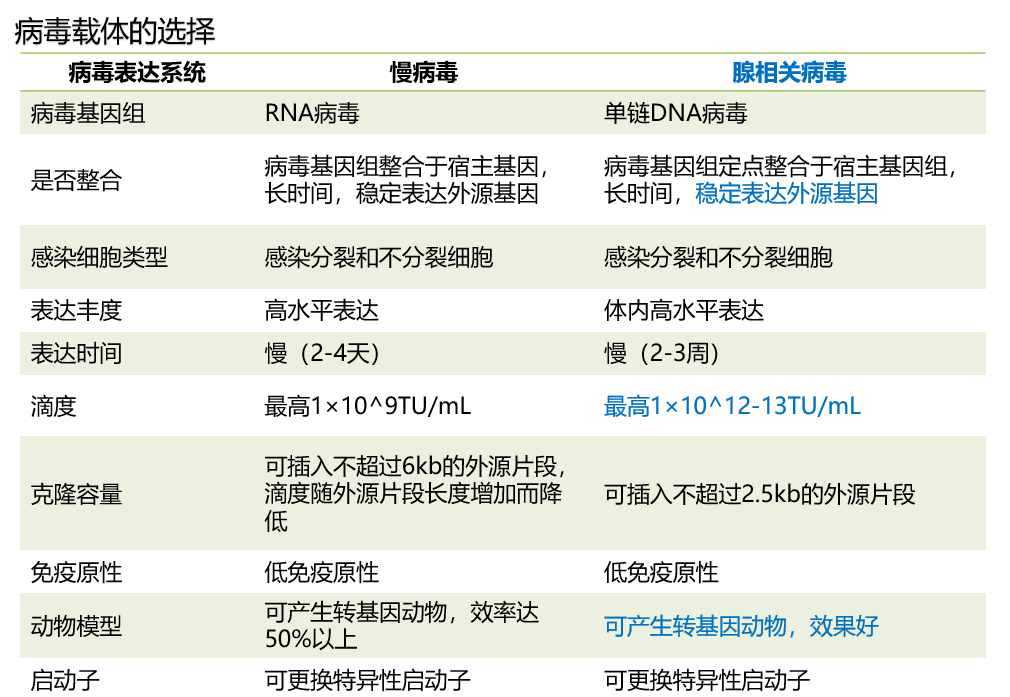 3.不同的病毒载体有不同的表达特点。