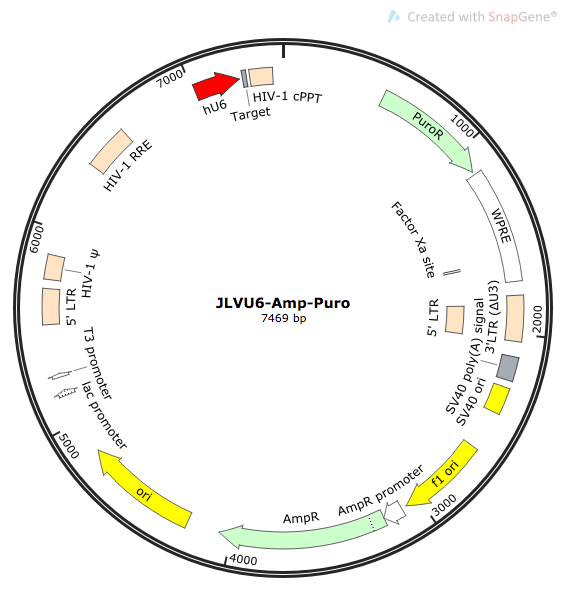 慢病毒(Lentivirus)载体是以HIV-1(人类免疫缺陷I型病毒)为基础发展起来的基因治疗载体。区别一般的逆转录病毒载体,它对分裂细胞和非分裂细胞均具有感染能力。慢病毒载体能够产生表达shRNA的高滴度的慢病毒,在周期性和非周期性细胞、干细胞、受精卵以及分化的后代细胞中表达shRNA,实现在多种类型的细胞和转基因小鼠中特异而稳定的基因表达的功能性沉默,为在原代的人和动物细胞组织中快速而高效地研究基因功能,以及产生特定基因表达降低的动物提供了可能性。慢病毒作为siRNA的携带者,不但具备特异性地使基因表达沉默的能力,而且充分发挥了慢病毒载体自身所具备的优势,为基因功能的研究提供了更强有力的工具。慢病毒载体可以将外源基因或外源的shRNA有效地整合到宿主染色体上,从而达到持久性表达目的序列的效果。对于一些较难转染的细胞, 如原代细胞、干细胞、不分化的细胞等,使用慢病毒载体,能大大提高目的基因或目的shRNA的转导效率,且目的基因或目的shRNA整合到宿主细胞基因组的几率大大增加,能够比较方便快捷地实现目的基因或目的shRNA的长期、稳定表达。